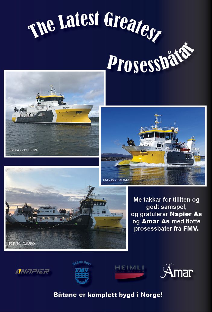 Vi takker for tilliten og det gode samspillet, og gratulerer Napier As og Amar As med flotte prosessbåter fra FMV.